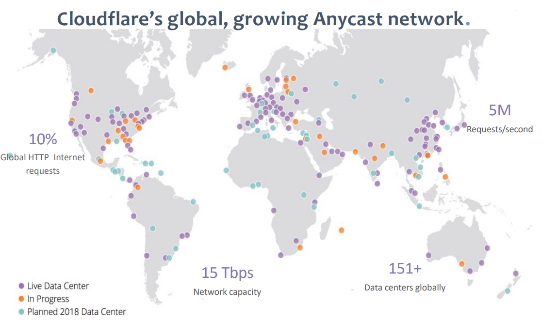 Cloudflare is global cloud platform designed to make everything connect to the internet secure, private, fast and reliable.